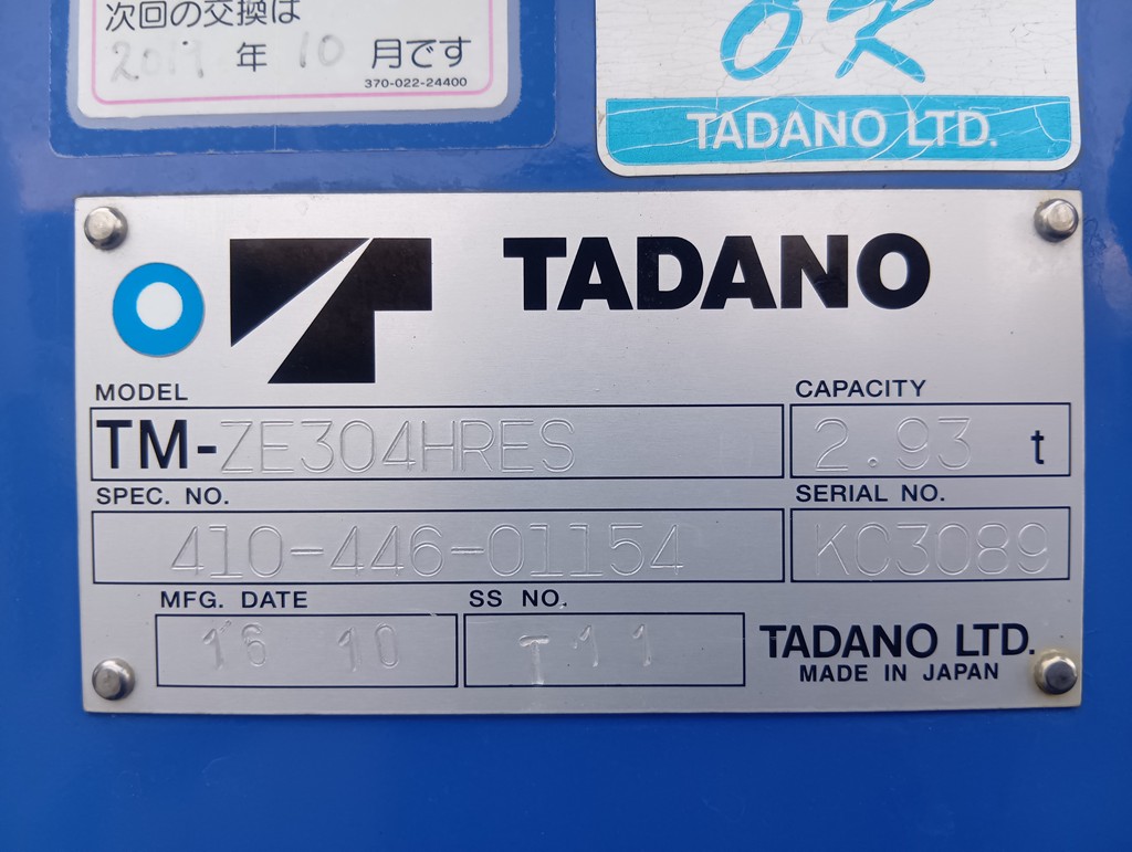 | 備考 | 木床 ロープ穴4対 タダノ ZE304HRES 4段 フックイン有 ラジコン有 |