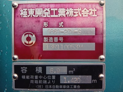 | F6 速 | 8820 | 極東 GB69-27H-S 6.9立米 プレス式 コンテナ傾倒装置付 | ||||||||||||