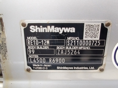 | 備考 | 鉄床 リアエアサス セイコーラック1対 リターダー有 アオリ2方開 新明和製垂直PG付 RE10-12M ラッシング1段 |