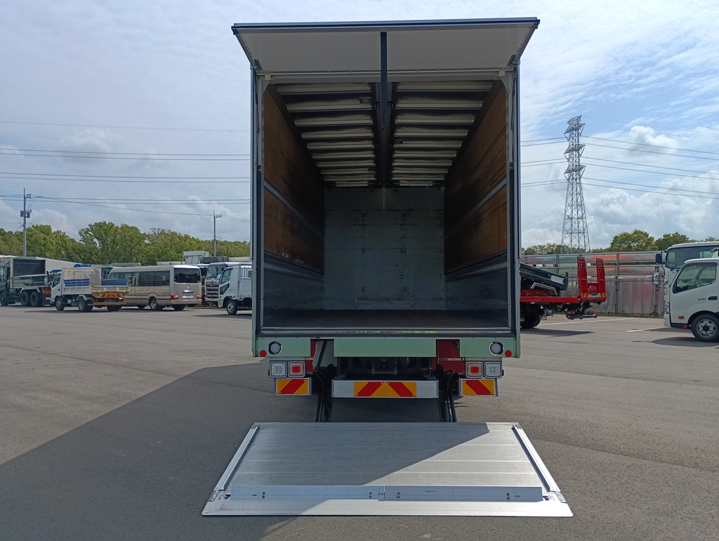 | 備考 | 日本トレクス 木床 リアエアサス 極東製跳ね上げPG付 ラッシング2段 フック5対 セイコーラック1対 アオリ2方開 メッキパーツ多数 アルミサイドガード ステンレスフェンダー |